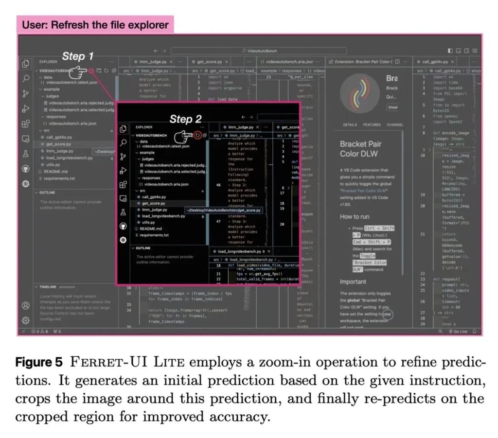 Lo increíble de Ferret-UI Lite es su técnica de «Zoom-in». A diferencia de otras IA que se pierden en pantallas pequeñas, el modelo de Apple: