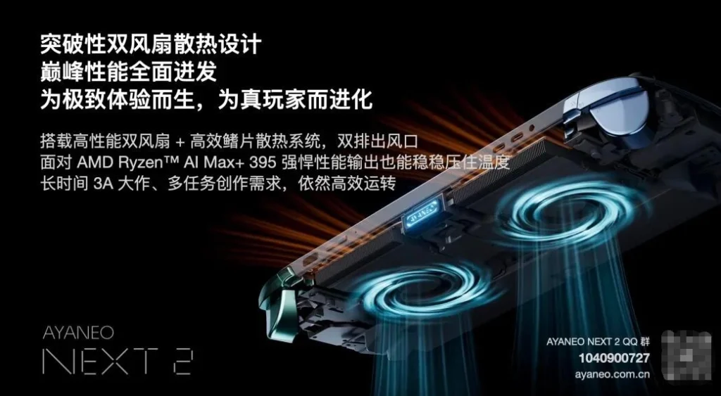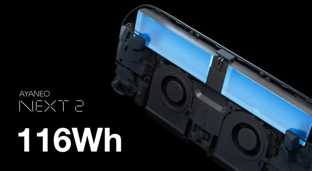 Desde el punto de vista de la ingeniería, la AYANEO NEXT 2 es una proeza de integración. Meter 16 núcleos Zen 5 y 40 CUs de gráfica en un chasis portátil requiere una disipación térmica de otro planeta. AYANEO ha implementado un sistema de doble ventilador y doble escape, alimentado por una batería gigantesca de 116 Wh (casi el triple que las primeras portátiles de esta generación).