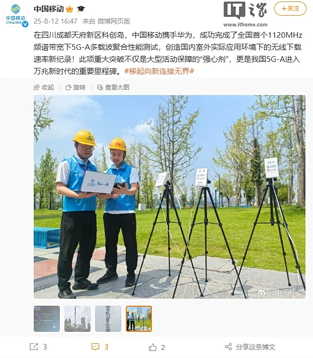 - Agregación de portadoras: Para esta prueba, han usado un ancho de banda de espectro de 1120 MHz. Imagina que el espectro son autopistas. Lo que han hecho Huawei y China Mobile es coger varias de esas autopistas, que normalmente van por separado, y fusionarlas en una única mega-autovía de datos para un solo usuario. Es una proeza técnica que requiere un hardware y un software de red increíblemente avanzados.
