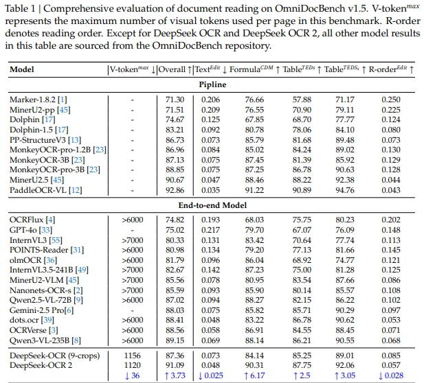 En el benchmark OmniDocBench v1.5, que incluye documentos complejos en chino e inglés, DeepSeek-OCR 2 logró una puntuación general del 91,09%, una mejora del 3,73% respecto a la versión anterior.