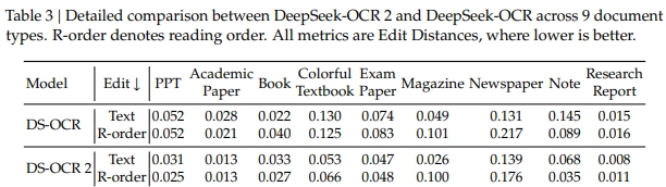 Lo más impresionante es la mejora en la precisión del orden de lectura, donde la distancia de edición disminuyó significativamente de 0,085 a 0,057, demostrando que el modelo entiende mucho mejor la estructura del contenido. Además, ha mejorado su estabilidad en entornos de producción, reduciendo la tasa de repetición en registros de usuarios y datos PDF.