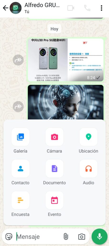 - Abre la conversación de WhatsApp y pulsa el botón de adjuntar (el clip en Android, o el símbolo