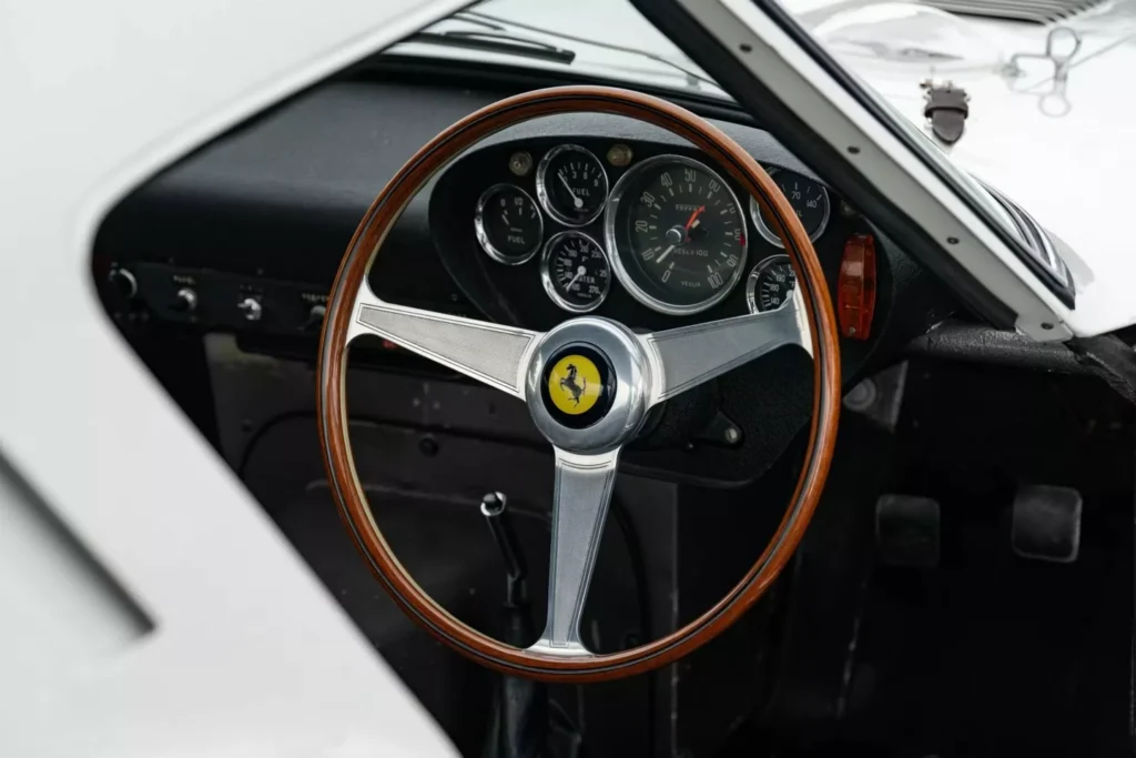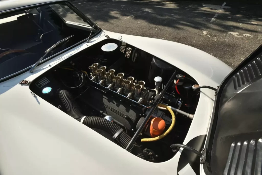 Ferrari solo fabricó 36 unidades del 250 GTO. De esos, solo ocho se hicieron con el volante a la derecha, y este es uno de ellos. Pero lo que lo convierte en una pieza única e irrepetible es que es el único 250 GTO que salió de fábrica pintado de blanco. Es, literalmente, único en su especie.