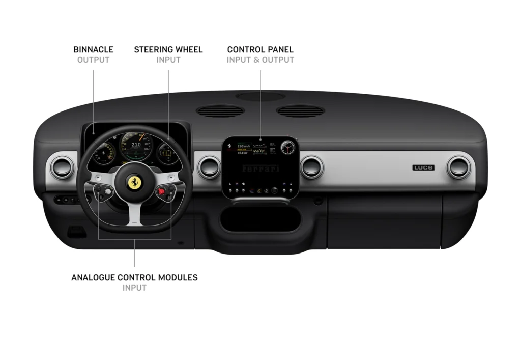 En un mundo lleno de pantallas táctiles, Ive y Ferrari han priorizado los botones físicos para mejorar la interacción real.