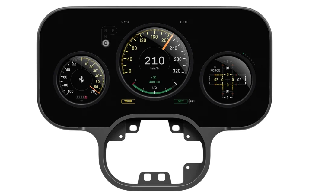 - Panel de instrumentos: Cuenta con dos paneles OLED superpuestos (desarrollados con Samsung) para lograr un contraste vibrante y negros puros.