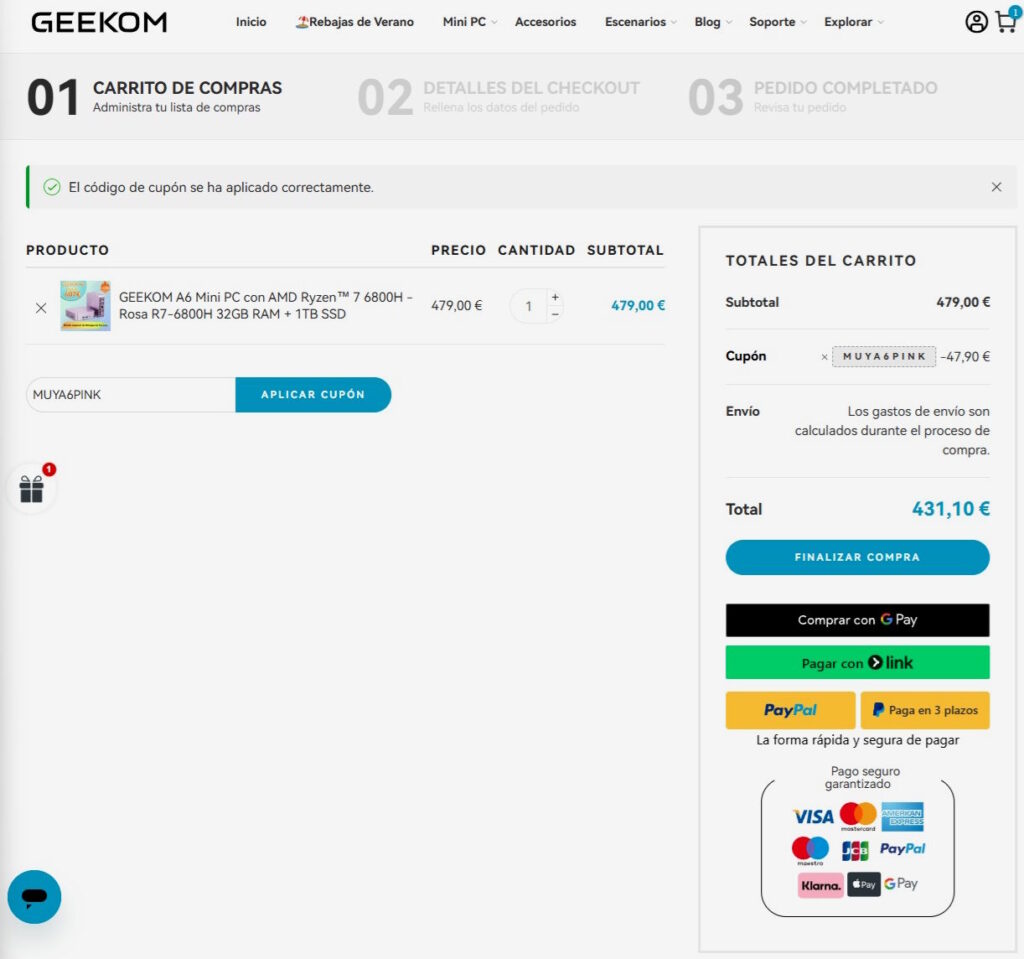 Y el ejemplo más brutal de esta revolución es el GEEKOM A6. Un monstruo compacto con un corazón AMD Ryzen 7 y 32GB de RAM DDR5 que ya era una compra inteligente a su precio original. Pero ahora, con un cupón de descuento que lo deja en 431,10 euros, ha pasado de ser una «buena opción» a ser, sencillamente, el rey indiscutible de la gama media.