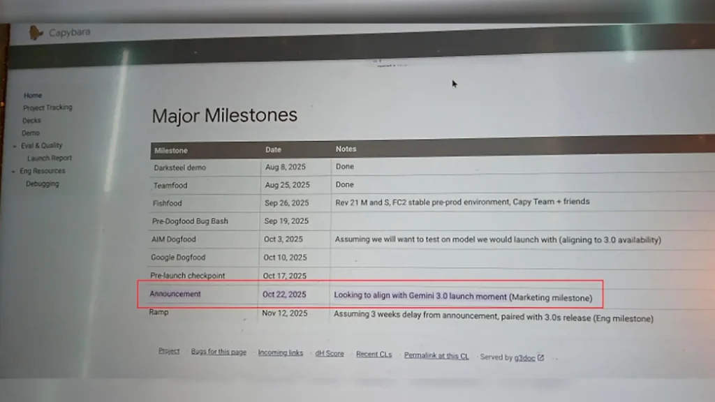 La imagen en cuestión, que ha aparecido en X (antes Twitter, por si alguien se despista), muestra una hoja de ruta con varios hitos de Gemini 3.0. Y uno de ellos, el más jugoso, es ese «anuncio» que apunta a la presentación oficial de la nueva bestia de la IA de Google.