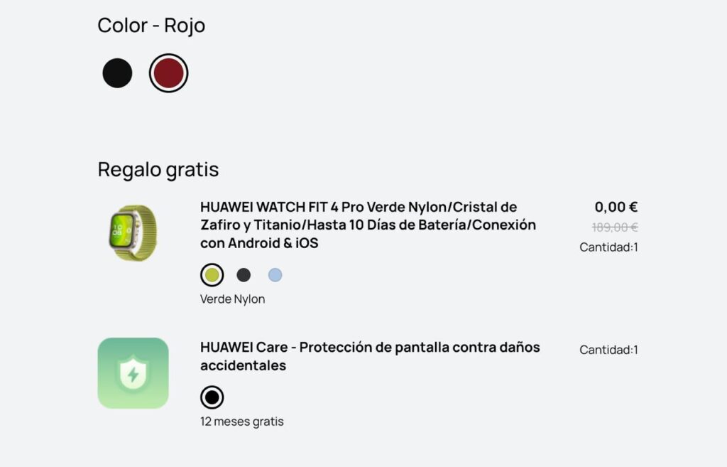 - Regalo incluido: Por la compra, Huawei incluye un reloj Watch Fit 4 Pro y 12 meses de protección de pantalla Huawei Care gratis.