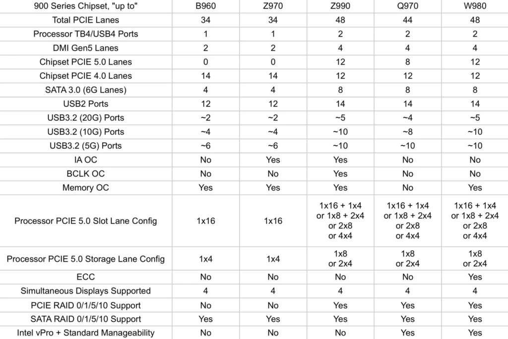 Analizando la tabla, mi apuesta es clara: el Z970 se convertirá en el nuevo estándar para los gamers. Aunque pierde el BCLK OC y algunas líneas PCIe 5.0 del chipset, mantiene el overclock de memoria y CPU (vía multiplicador/IA), que es lo que el 99% de los usuarios busca. El B960 queda como una opción de entrada muy digna, pero ojo con las limitaciones de expansión si planeas usar muchos SSDs Gen5 en el futuro.