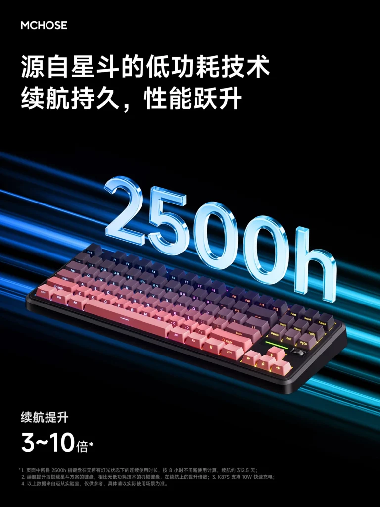 Aquí es donde la mandíbula se te cae al suelo. El K87S es el primer teclado en utilizar la tecnología de desarrollo propio de Maicong, «Star Dou» y «TOPSEED 2.0». ¿Traducción de esta palabrería de marketing? Dos datos que lo cambian todo: