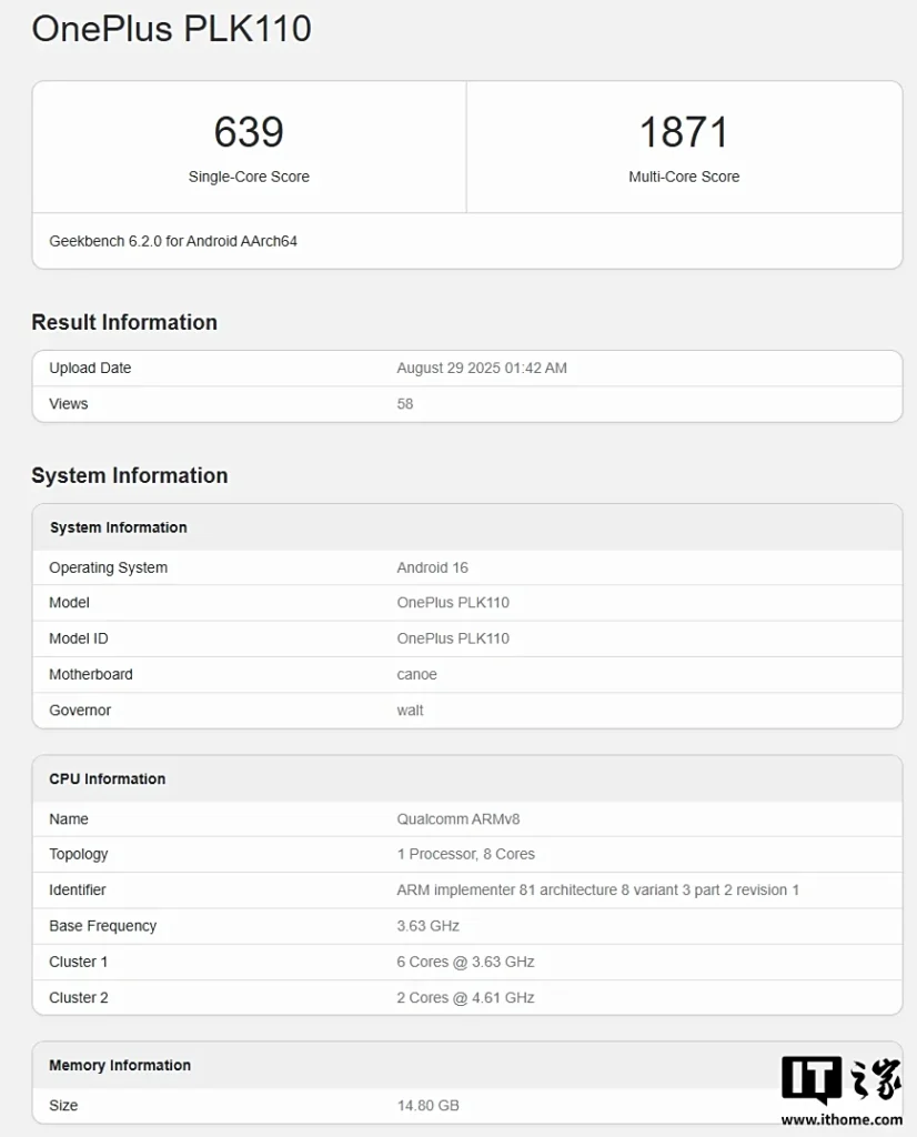 La guerra por el móvil más potente de 2026 acaba de comenzar. Y el primer soldado ya está en el campo de batalla. Acaba de aparecer en la base de datos de Geekbench un misterioso dispositivo de OnePlus, con el número de modelo PLK110, que no es otro que un prototipo del esperado OnePlus 15. Y su interior alberga el corazón que dará vida a casi todos los buques insignia de Android del próximo año: el todavía no anunciado Qualcomm Snapdragon 8 Elite Gen 5.