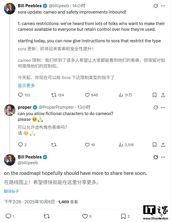 Bill Peebles, líder del equipo de Sora, ha declarado hoy que las apariciones de personajes virtuales en videos «están en la hoja de ruta de desarrollo». Esto significa que Sora introducirá funciones legítimas de cooperación entre personajes virtuales en el futuro, permitiendo a los creadores utilizar figuras conocidas de forma autorizada.