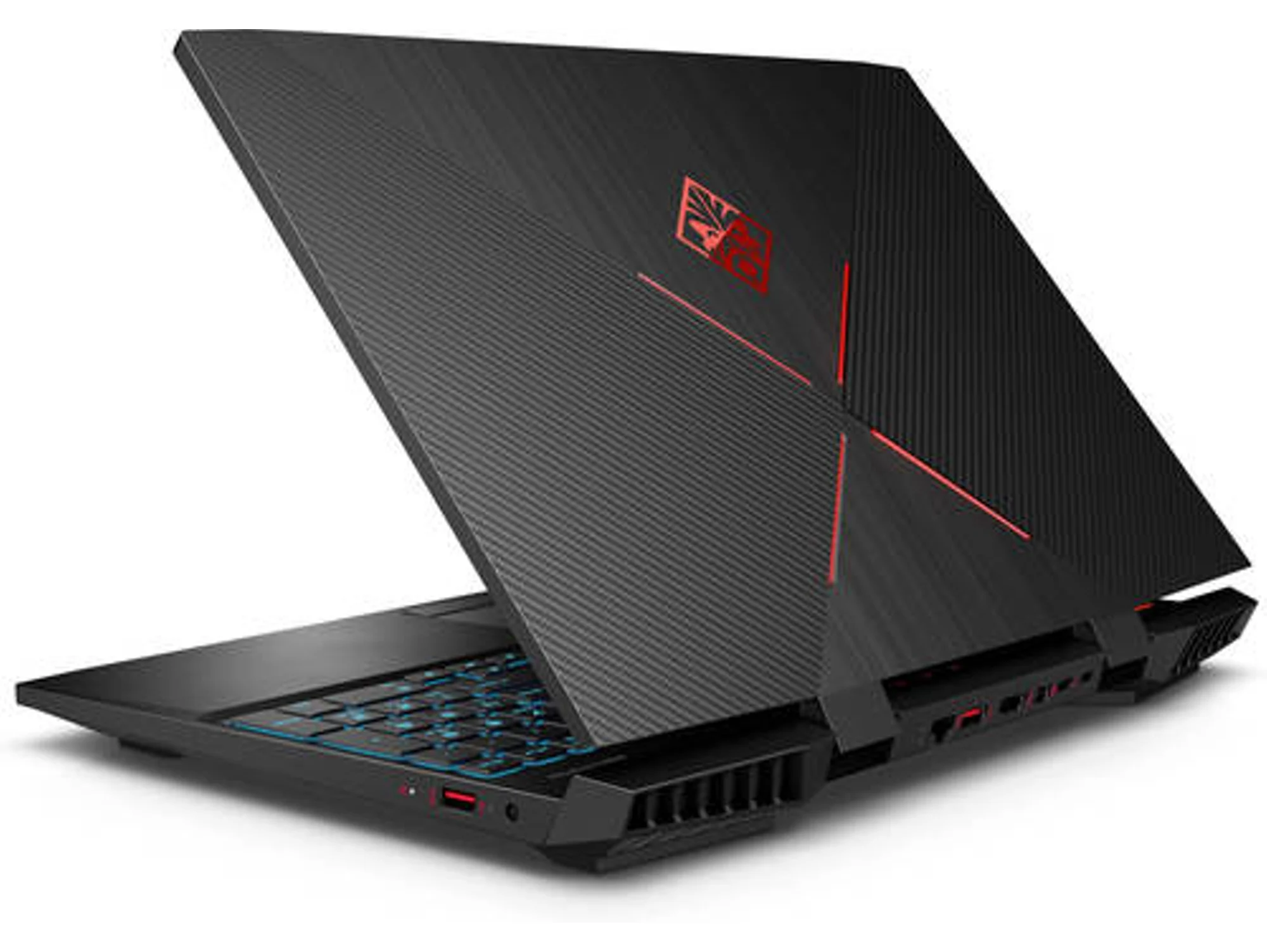 El HP Omen 15 llama la atención por su diseño agresivo, muy al estilo de un pura raza gaming. El equipo tiene grandes salidas de aire en la parte posterior para evitar el sobrecalentamiento de su potente hardware.
