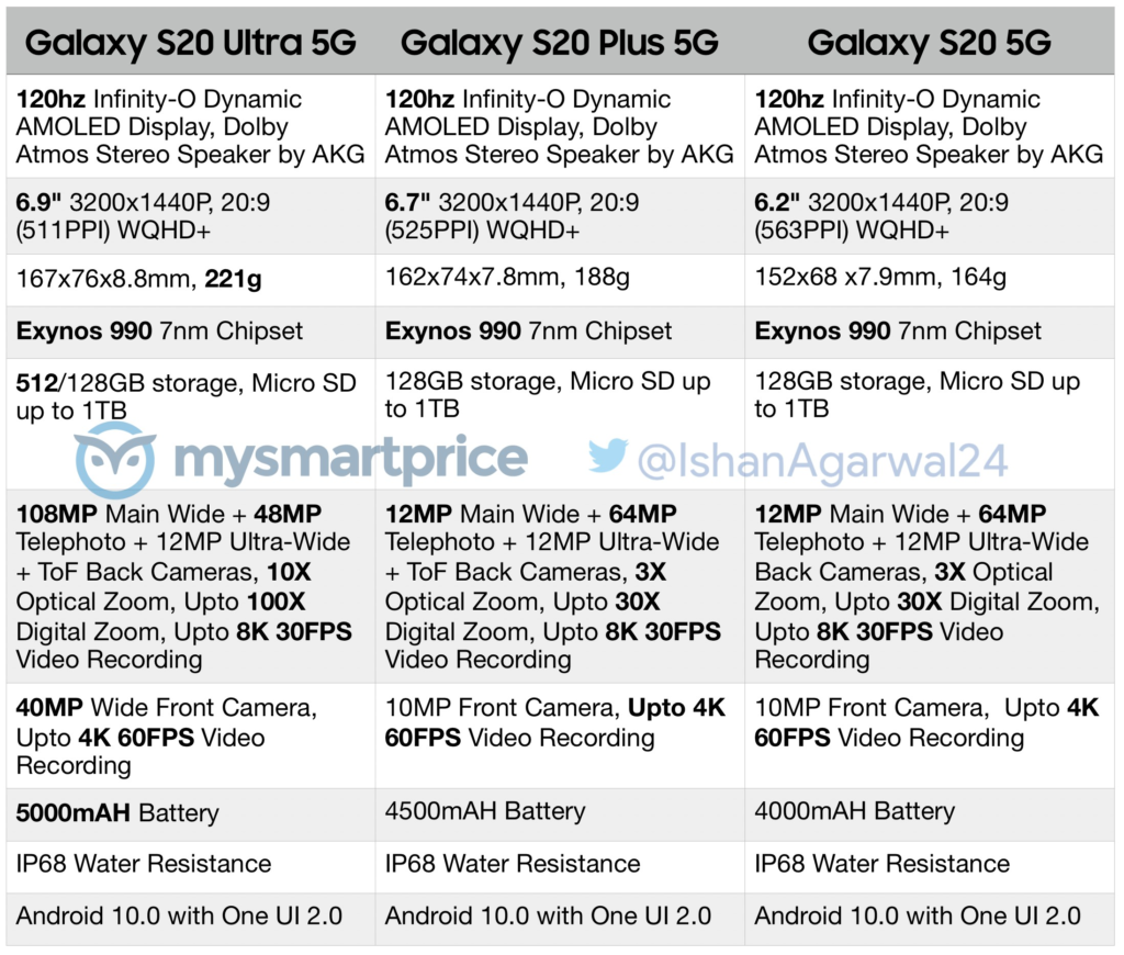 samsung galaxy s20 plus ultra 5g specs india ishanagarwal24 mysmartprice