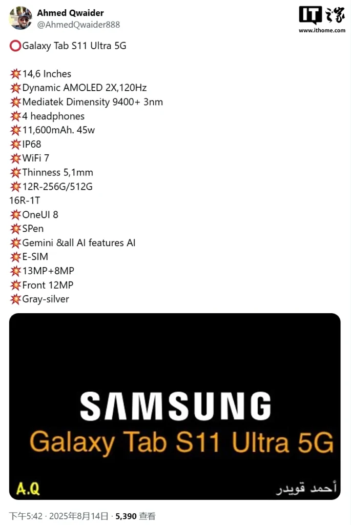 Según la filtración, la Tab S11 Ultra montará el MediaTek Dimensity 9400+, el chip más potente jamás creado por la compañía taiwanesa. Fabricado en un avanzado proceso de 3 nanómetros, este procesador promete un rendimiento que, sobre el papel, debería no solo igualar, sino superar al mejor Snapdragon.
