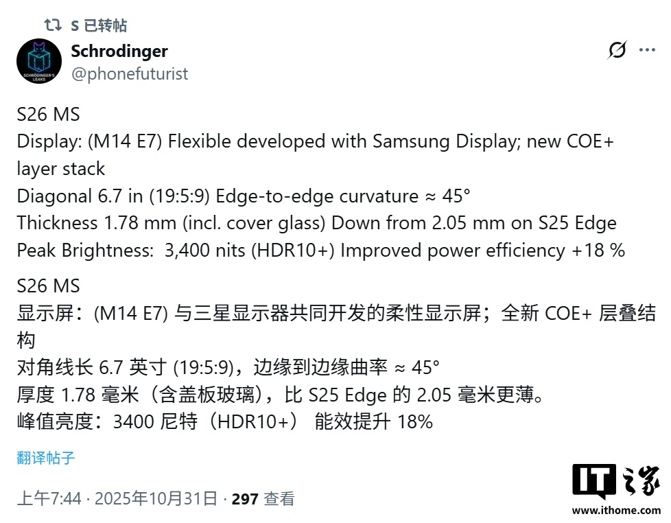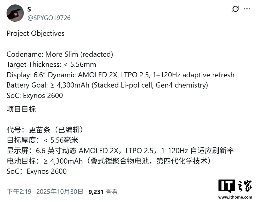 Parece que Samsung no se rinde con la innovación estética. Tras la cancelación del Galaxy S26 Edge, la compañía surcoreana estaría trabajando en un nuevo smartphone insignia ultrafino con el nombre en clave “More Slim”, según las filtraciones del reconocido leaker @SPYGO19726.