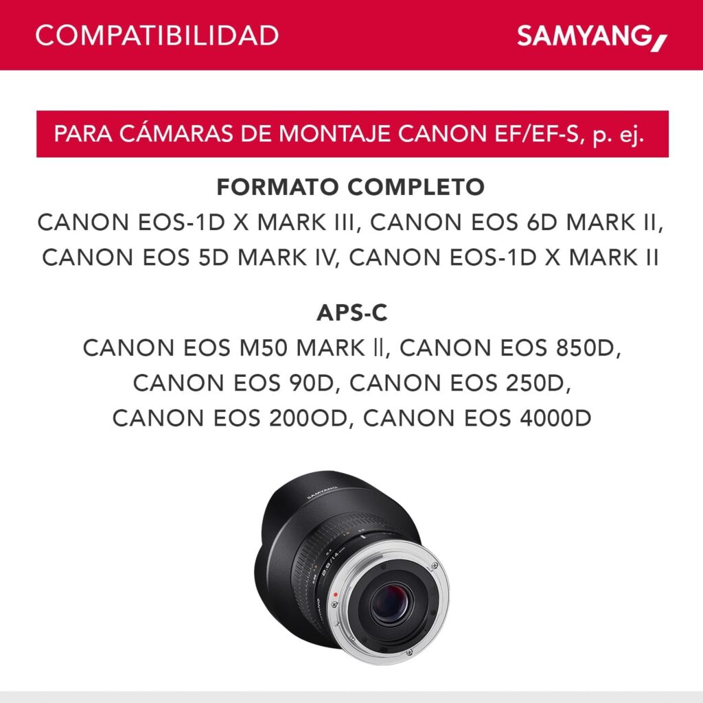 La opinión del Gurú: Si tienes una cámara Canon con montura EF (ya sea Full Frame o APS-C) y quieres experimentar con perspectivas extremas o iniciarte en la fotografía nocturna sin arruinarte, este Samyang por 200 € es una compra casi obligada. No es perfecto, pero es una herramienta creativa fantástica por el precio de un objetivo de kit básico.