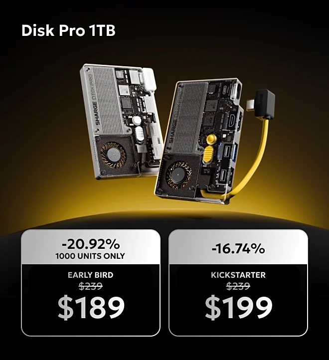 El Sharge Disk Pro está disponible con ofertas de «Early Bird» y «Kickstarter» en varias capacidades: