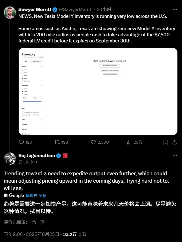 ¿El resultado? Un tsunami de pedidos de última hora. La gente se ha lanzado en masa a firmar contratos para no perder los 7.500 dólares, provocando que el inventario de Model Y en muchas zonas de Estados Unidos, como Austin (Texas), haya caído a cero.